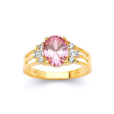 Pink & White CZ Center-Stone Ladies Ring in 14K Gold