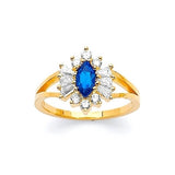 Blue & White CZ Center-Stone Ladies Ring in 14K Gold