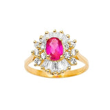 Red & White CZ Center-Stone Ladies Ring in 14K Gold