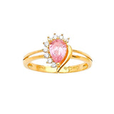 Pink & White CZ Center-Stone Ladies Ring in 14K Gold