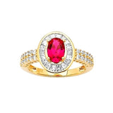 Red & White CZ Center-Stone Ladies Ring in 14K Gold