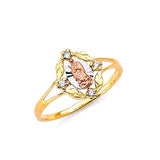 White CZ Guadalupe Ladies Ring in 14K Tri-Color Gold