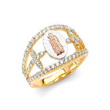 White CZ Guadalupe Ladies Ring in 14K Tri-Color Gold
