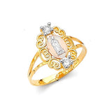 White CZ Guadalupe Ladies Ring in 14K Tri-Color Gold