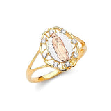 White CZ Guadalupe Ladies Ring in 14K Tri-Color Gold