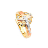 White CZ Crucifix Ladies Ring in 14K Tri-Color Gold