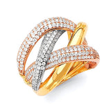 White CZ Multi-Band Ladies Ring in 14K Tri-Color Gold