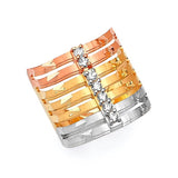 White CZ Multi-Band Ladies Ring in 14K Tri-Color Gold