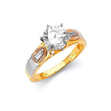 White CZ Guadalupe Center-Stone Ladies Ring in 14K Tri-Color Gold
