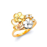 White CZ Flower Ladies Ring in 14K Tri-Color Gold
