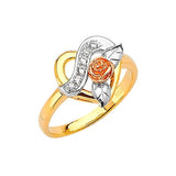 White CZ Heart Ladies Ring in 14K Tri-Color Gold