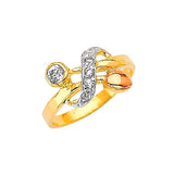 White CZ Heart Ladies Ring in 14K Tri-Color Gold