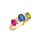 Multi-Color CZ Three-Stone Ladies Ring in 14K Gold