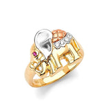 Red & White CZ Elephant Ladies Ring in 14K Tri-Color Gold