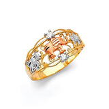 White CZ Elephant Ladies Ring in 14K Tri-Color Gold