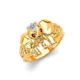 Red CZ Elephant Ladies Ring in 14K Two-Tone Gold