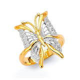 White CZ Butterfly Ladies Ring in 14K Two-Tone Gold