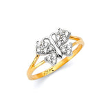White CZ Butterfly Ladies Ring in 14K Two-Tone Gold