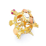 Red & White CZ Turtle Ladies Ring in 14K Tri-Color Gold