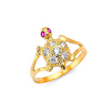 Red & White CZ Turtle Ladies Ring in 14K Gold