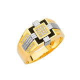 White CZ and Onyx Micro-Pave Mens Ring in 14K Two-Tone Gold