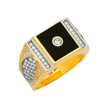 White CZ and Onyx Mens Ring in 14K Two-Tone Gold