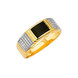 White CZ and Onyx Micro-Pave Mens Ring in 14K Two-Tone Gold