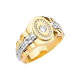White CZ Micro-Pave Mens Ring in 14K Two-Tone Gold
