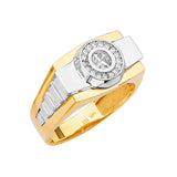 White CZ Micro-Pave Mens Ring in 14K Two-Tone Gold