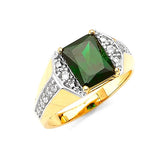 Green & White CZ Center-Stone Mens Ring in 14K Two-Tone Gold
