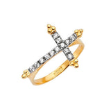 White CZ Cross Ladies Ring in 14K Two-Tone Gold
